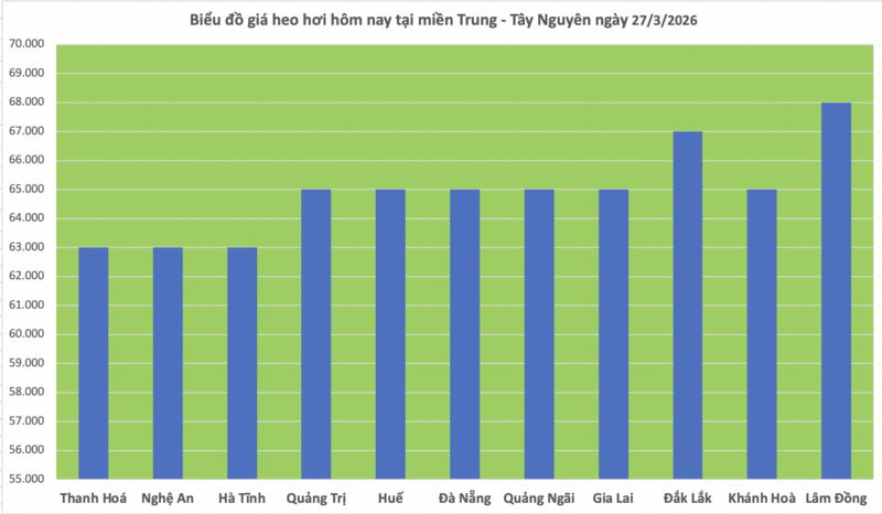 Lâm Đồng tiếp tục là địa phương có giá cao nhất khu vực, duy trì mức 68.000 đồng/kg.
