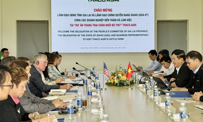 Tại buổi làm việc, đại diện phía Hoa Kỳ, Bang Idaho đánh giá cao cách Gia Lai và THACO AGRI xây dựng mô hình chăn nuôi quy mô lớn, tích hợp công nghệ quản lý tiên tiến; bày tỏ sẵn sàng hỗ trợ tỉnh trong công tác đào tạo, chuyển giao kỹ thuật và kết nối doanh nghiệp hai bên.