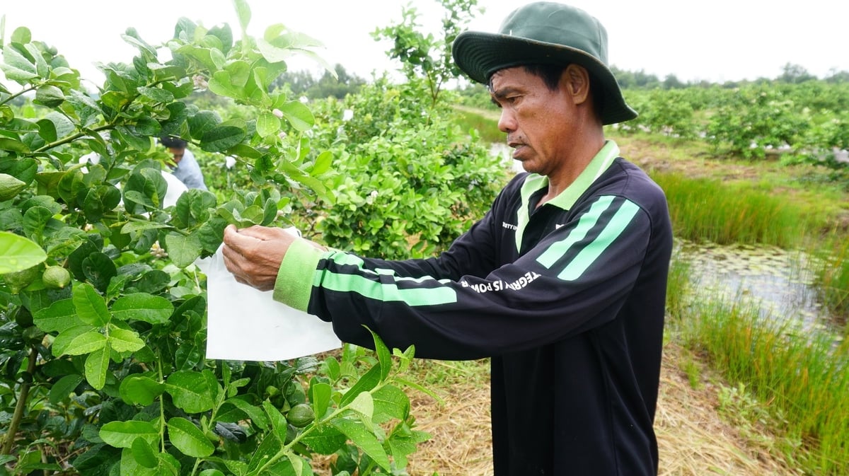 Chavi đang tiên phong áp dụng kỹ thuật bao trái chanh – giải pháp bảo vệ thực vật giúp nâng cao chất lượng sản phẩm. Ảnh: Trần Trung.