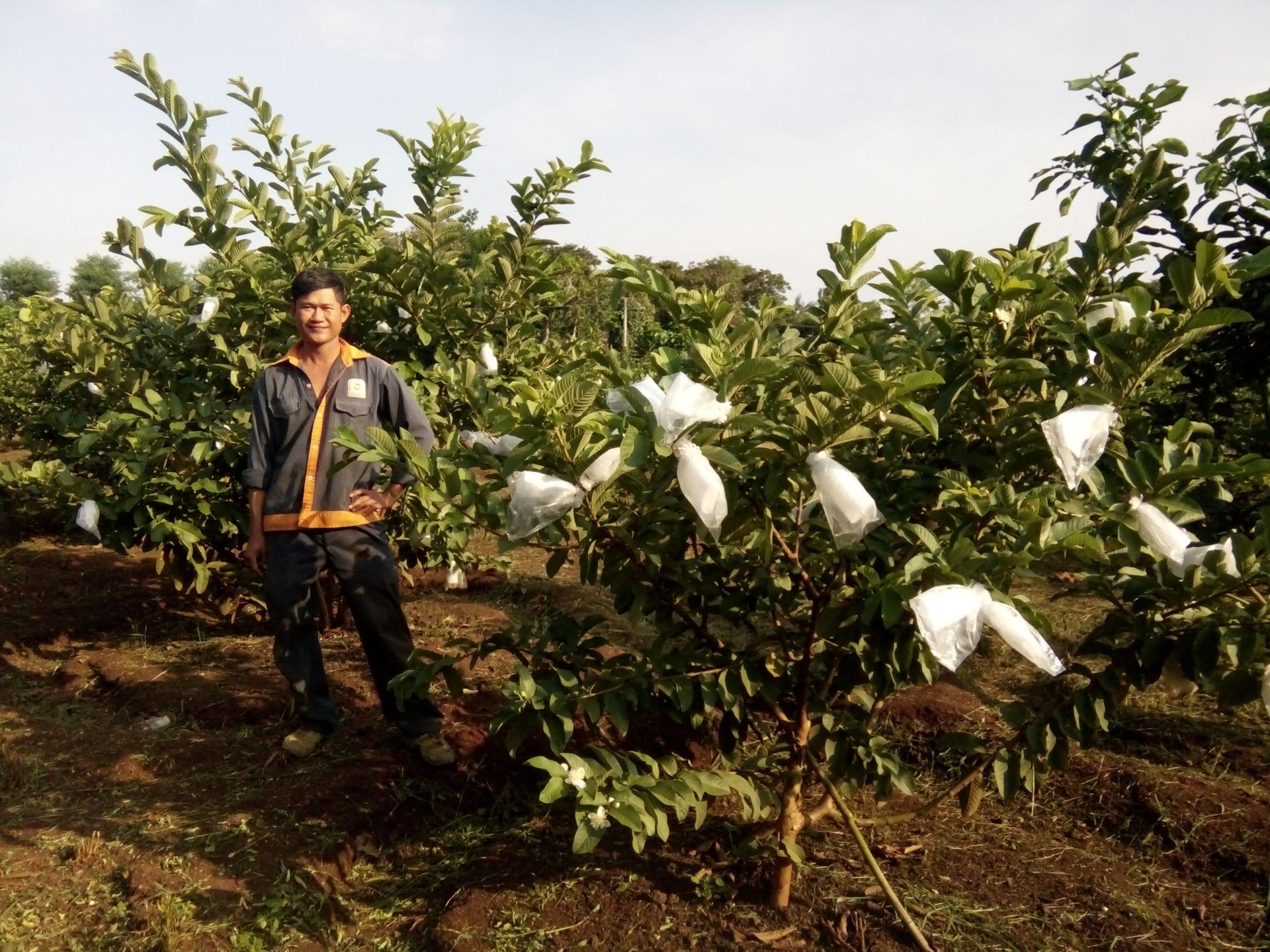 Vườn cây ăn quả diện tích 3 ha gồm các loại cây: ổi, mít, xoài và bưởi tại thôn 9, xã Hòa Phú (TP. Buôn Ma Thuột) của anh Võ Duy Tân (thành viên Tổ hợp tác trái cây Tiến Phát Hòa Phú) đã được cấp chứng nhận VietGAP gần 3 năm nay. Anh Tân cũng là người khởi xướng xây dựng mô hình trồng ổi lê hướng hữu cơ đầu tiên tại TP. Buôn Ma Thuột, từng đưa sản phẩm trái cây giới thiệu tại nhiều hội thảo xúc tiến thương mại trước dịch COVID-19.