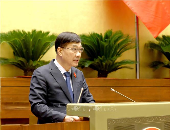 Chủ nhiệm Ủy ban Kinh tế của Quốc hội Vũ Hồng Thanh trình bày Báo cáo giải trình, tiếp thu, chỉnh lý dự thảo Luật Quy hoạch đô thị và nông thôn. Ảnh: Phương Hoa/TTXVN