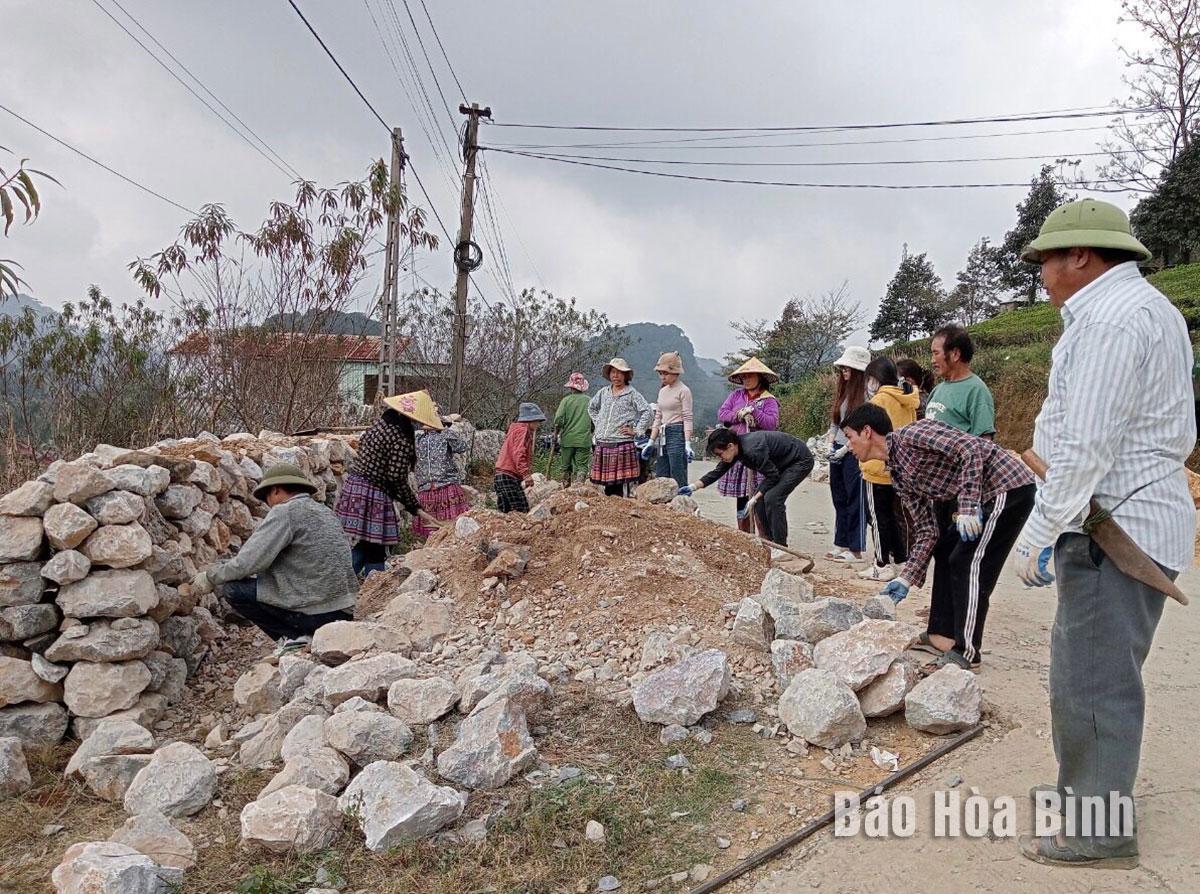 Người dân xã Pà Cò (Mai Châu) xây dựng hàng rào đá, tạo cảnh quan cho khu dân cư.