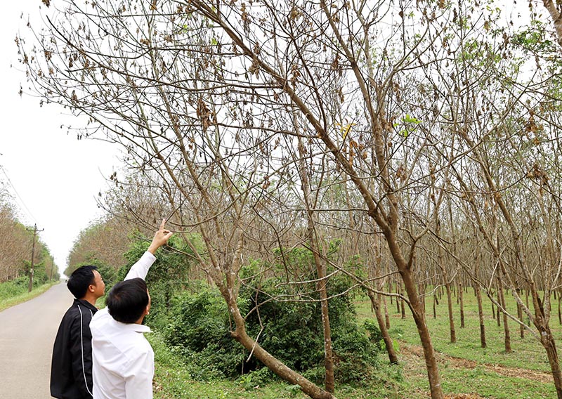 Đứng trước thực trạng này, những ngày gần đây, đơn vị đã chủ động phối hợp với Chi cục Kiểm dịch thực vật vùng VI (Cục Thực Vật-Bộ Nông nghiệp và Môi trường) tiến hành điều tra, xác minh nguyên nhân dẫn đến hàng trăm ha cây cao su của công ty đột nhiên bị héo lá với tỷ lệ bất thường. Bước đầu, công ty tạm xác định cây cao su bị héo, chết lá do sốc nhiệt, sốc sinh lý. Để sớm chấm dứt hiện tượng này, đơn vị đã chủ động dùng máy bay không người lái tiến hành phun thử nghiệm một số loại thuốc để chữa bệnh, dưỡng lá trên diện tích 10ha, nếu thấy hiệu quả thì tiếp tục nhân rộng...