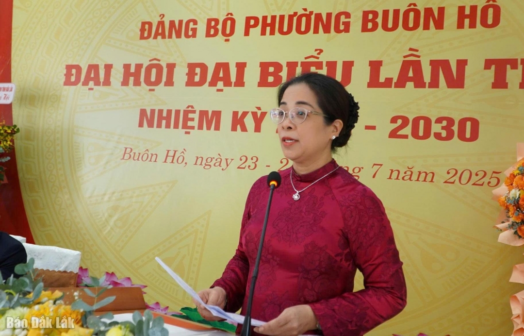 Phát biểu chỉ đạo tại Đại hội, Phó Bí thư Tỉnh ủy Huỳnh Thị Chiến Hòa nhấn mạnh, phường Buôn Hồ là một trong những phường trung tâm của khu vực Tây Bắc tỉnh Đắk Lắk. Mặc dù mới thành lập, song Đảng bộ, chính quyền, hệ thống chính trị của phường đã làm tốt công tác chính trị tư tưởng, nhanh chóng kiện toàn tổ chức bộ máy, triển khai vận hành thông suốt các hoạt động.