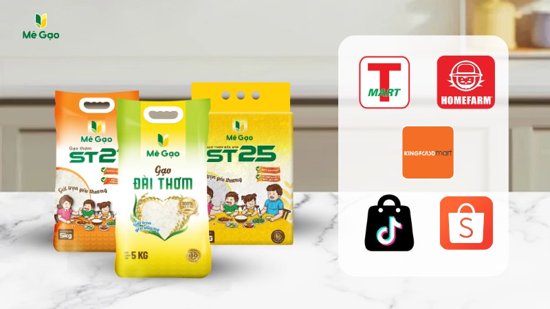 • Mua trên các sàn thương mại điện tử: Khách hàng có thể tìm kiếm gian hàng chính hãng của Mê Gạo trên các sàn thương mại điện tử như Shopee, Tiktokshop để mua sắm tiện lợi.