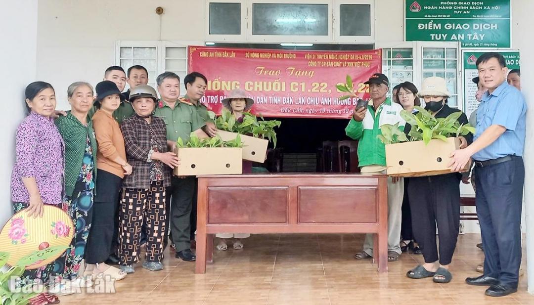 | Bà con nhận hỗ trợ chuối giống để khôi phục sản xuất sau bão lũ. |