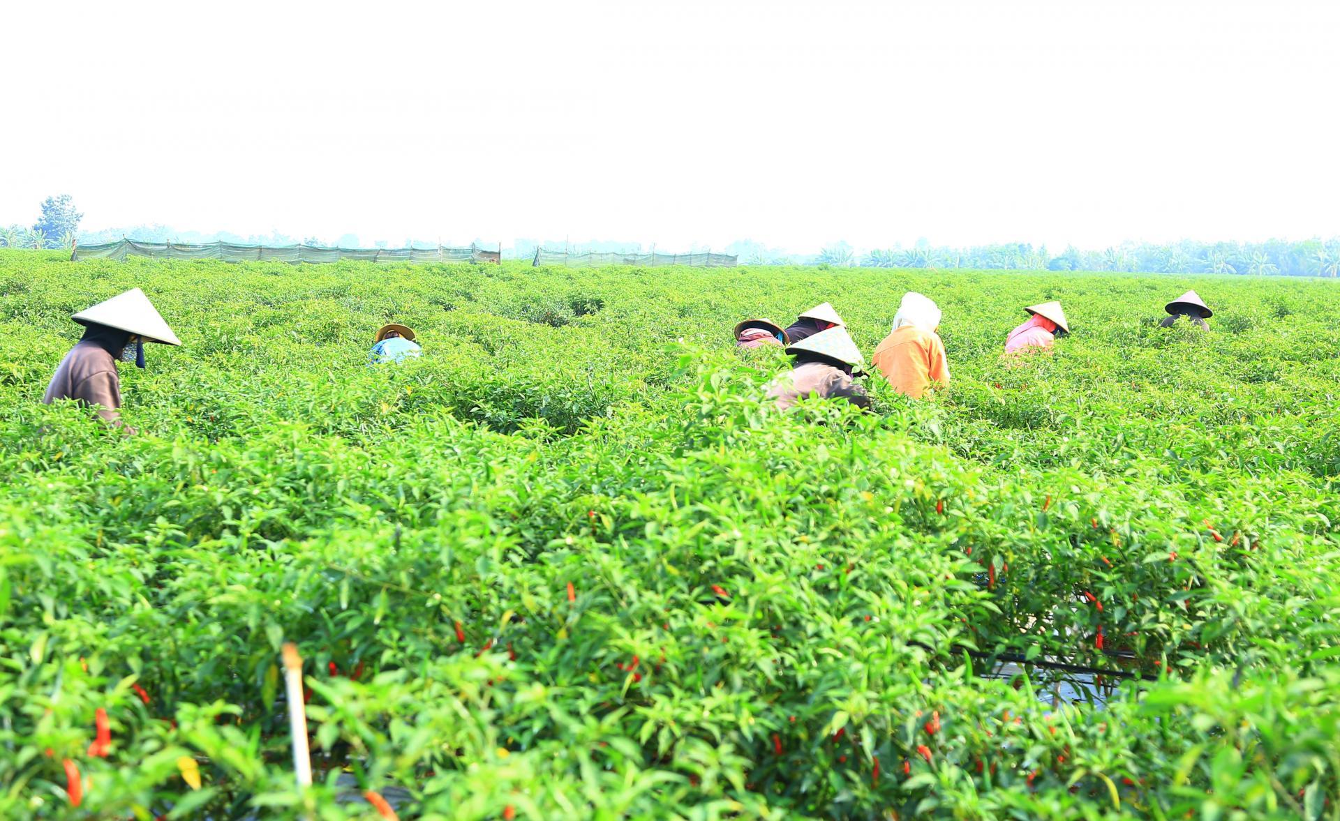 | Vườn ớt chỉ thiên của anh Châu Ngọc Bình tạo việc làm cho nhiều lao động tại địa phương. |