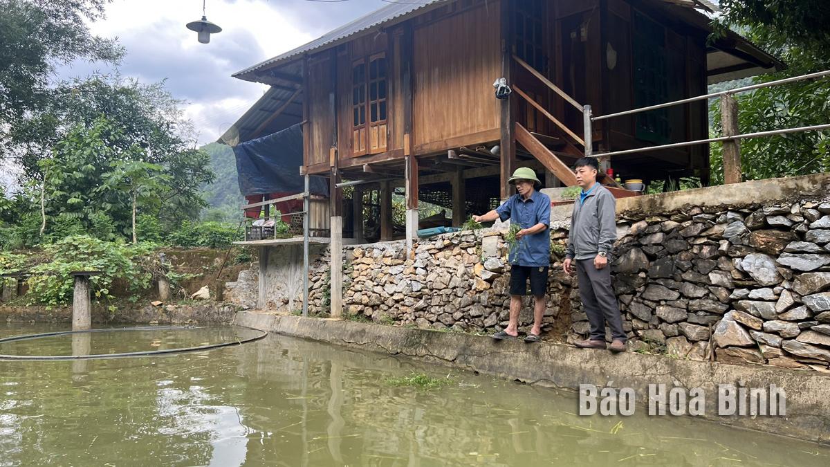 Mô hình nuôi cá dầm xanh của ông Khà Văn Nhị (bên trái), xóm Nghẹ, xã Vạn Mai (Mai Châu) cho hiệu quả kinh tế cao.