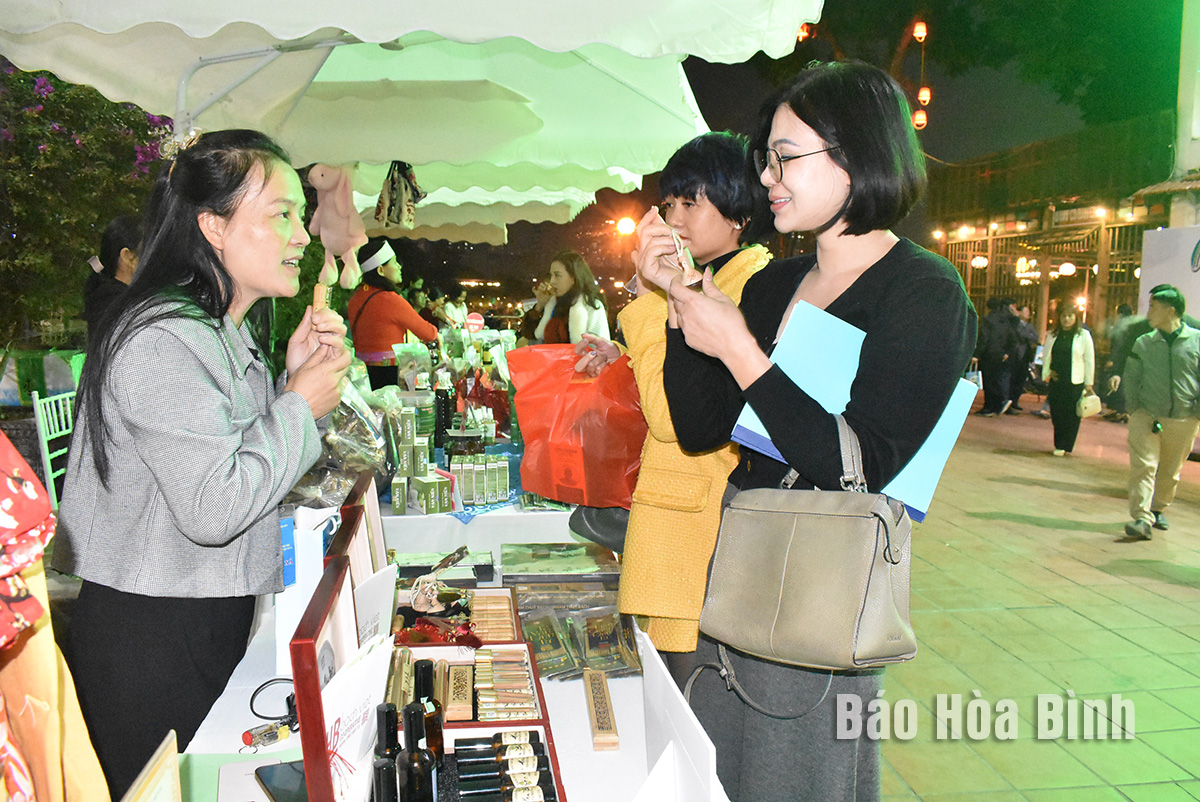Tại hội nghị, 22 HTX, doanh nghiệp của thành phố Hà Nội được tham quan, tìm hiểu các sản phẩm OCOP tiêu biểu của Hòa Bình như: Bưởi đỏ Tân Lạc; rau hữu cơ Lương Sơn; sản phẩm nước hoa, hương, tinh dầu, rau an toàn (thành phố Hòa Bình); cam Cao Phong; các loại trà (Yên Thủy); nước ngâm chân, thuốc lá cây (Kim Bôi); sản phẩm thủ công mỹ nghệ, rau củ quả an toàn ở huyện Đà Bắc...