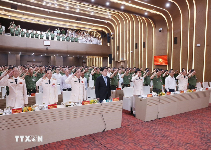 Chủ tịch nước Lương Cường dự hội nghị sơ kết 6 tháng đầu năm của Bộ Công an. Ảnh: Lâm Khánh/TTXVN