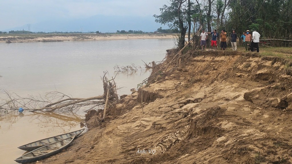 "Sạt lở đất đã gây ảnh hưởng nặng nề đến bờ sông Thu Bồn kéo dài hơn 500m. Nghiêm trọng nhất là sạt lở đã "ăn" sâu vào diện tích đất bên trong của người dân gần 100 m, gây uy hiếp hàng loạt công trình nhà cửa, các trang trại chăn nuôi bò của người dân.