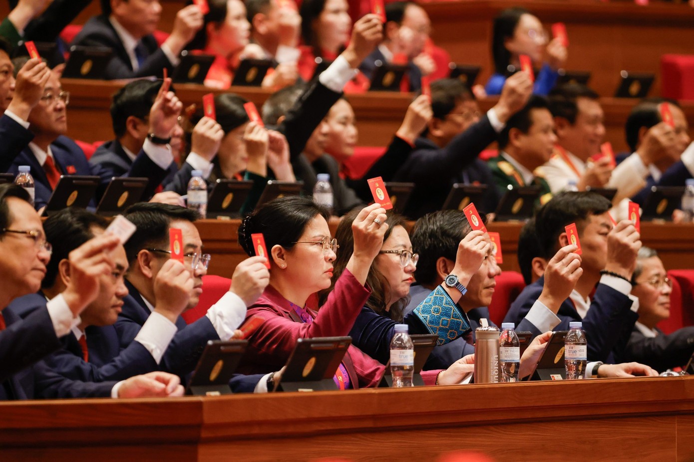 | Đại biểu Đại hội XIV đã bỏ phiếu thông qua chương trình đại hội điều chỉnh, rút ngắn 1,5 ngày so với dự kiến ban đầu. |