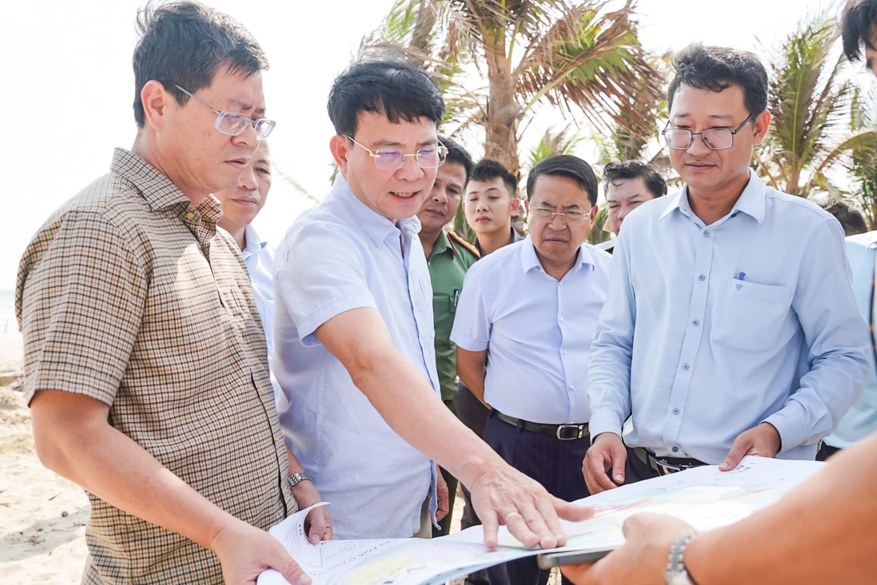 Chủ tịch UBND tỉnh Lâm Đồng Hồ Văn Mười khảo sát thực địa một số khu vực ven biển phía Nam Lâm Đồng.