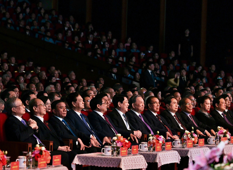 Dự Lễ kỷ niệm có các đồng chí: Tô Lâm, Tổng Bí thư Ban Chấp hành Trung ương Đảng Cộng sản Việt Nam; Lương Cường, Ủy viên Bộ Chính trị, Chủ tịch nước CHXHCN Việt Nam; Phạm Minh Chính, Ủy viên Bộ Chính trị, Thủ tướng Chính phủ nước CHXHCN Việt Nam; Trần Thanh Mẫn, Ủy viên Bộ Chính trị, Chủ tịch Quốc hội nước CHXHCN Việt Nam cùng các đồng chí lãnh đạo, nguyên lãnh đạo Đảng, Nhà nước.