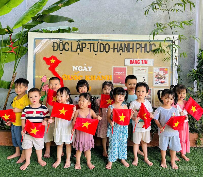 Đón mừng Quốc khánh 2/9, tại một số trường mầm non đã sắp xếp các tiểu cảnh gắn với những sự kiện ý nghĩa lịch sử như Cách mạng Tháng Tám, hình ảnh Chủ tịch Hồ Chí Minh đọc Tuyên ngôn Độc lập...