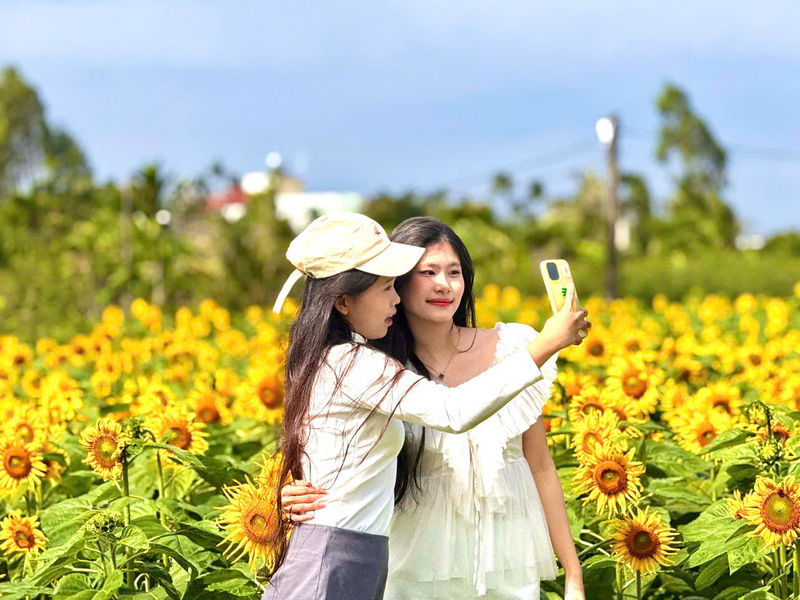 Đứng lọt thỏm giữa nền vàng rực rỡ của hoa hướng dương là một trải nghiệm thú vị. Ảnh: Nguyễn Dương